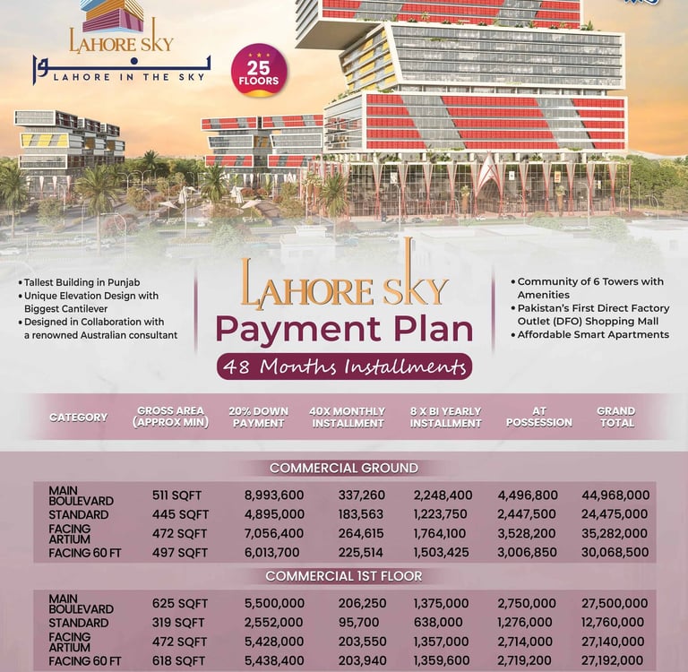 Lahore Sky, a name with a 6-Tower Community Living Experience Biggest IT and Technology Park in Lahore with innovation in the Real Estate industry originated in Lahore, Pakistan. A city where the landscape of investment prospects could be changed into visionary transformations. Under the visionary leadership of Hamza Majeed whose expertise navigates the company. We aim to set new benchmarks in the industry by delivering unmatched services to those who seek a comfortable abode. Lahore Sky isn’t just a company but it’s a philosophy that brings forth impressive architectural marvels. With state-of-the-art infrastructure and amenities, Lahore Sky delivers unmatched facilities to investors. The developers of this high-rise project promise the best perks to businesses, startups, tech companies, and residents. The builders behind the project have ensured that Lahore Sky is a standalone location in the city's heart.